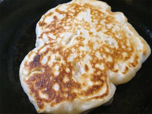 ワッフル種平焼きパン 冷凍パスタをチンする間、 冷蔵庫で育ててるワッフル種をスキレットで焼いたるの。 変な形。(:3っ)∋〜 でも、もっちりふわふわ。(。>∀<。)ノシ 冷凍パスタがチンできた頃、 平焼きパンも完成。 今日もこげな夕飯…(ΦωΦ) しゃーないか。 キ…
